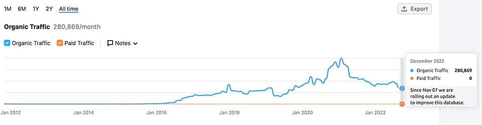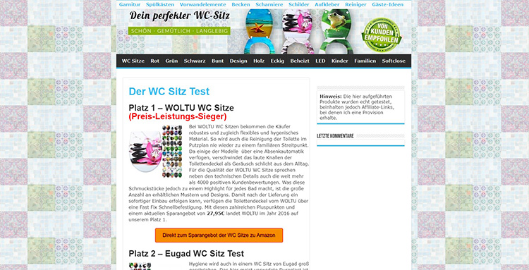 Affiliate Marketing 16 Affiliate Webseiten Beispiele – Top & Flop inkl. Einnahmen von Christopher Hauffe 15. Dezember 2022 13 Kommentar/e Wer Online Geld verdienen möchte, ist mit Affiliate Marketing immer noch gut aufgehoben. Das sage ich nicht einfach so, sondern werde das an konkreten Affiliate Webseiten Beispielen untermauern!Denn man kann mit Affiliate-Blogs immer noch gutes Geld verdienen. Doch damit das funktioniert, muss man einige Dinge beachten!Mir ist es wichtig, meine Aussagen auch mit Fakten zu belegen.Bereits 2019 hatte ich genau zu diesem Thema schon mal geschrieben, was die besten Ideen und Beispiele sind.In diesem Beitrag möchte ich dir ein Update geben und dir aktuelle Beispiele zeigen. Denn nicht mehr alles, was früher funktioniert hat, funktioniert jetzt immer noch genau so gut! >> Lerne Affiliate-Blogs zu erstellen – Schritt für Schritt << Inhalt ToggleWas sind gute Nischenideen und was hat sich geändert?Nischenthemen, die gut funktionierenWie entstehen erfolgreiche Nischenseiten?Affiliate Marketing Beispiele – Kriterien für erfolgreiche Nischenseiten12 Gute Affiliate Webseiten BeispieleNischenseiten Beispiel #1 trockenekopfhaut.netNischenseiten Beispiel #2 indoor-garten-tester.deNischenseiten Beispiel #3 www.coffeeness.deNischenseiten Beispiel #4 home-places.deNischenseiten Beispiel #5 surfnomade.deNischenseiten Beispiel #6 www.tabletblog.deNischenseiten Beispiel #7 www.nach-holland.deNischenseiten Beispiel #8 rheinhessen-urlaub.deNischenseiten Beispiel #9 heimkinoheld.deNischenseiten Beispiel #10 emailtooltester.deNischenseiten Beispiel #11 museos.comNischenseiten Beispiel #12 www.babys10.com4 schlechte Affiliate Marketing BeispieleSchlechte Nischenseiten – Beispiel #1 wc-sitz.bernaunet.euSchlechte Nischenseiten – Beispiel #2 gesichtsbuerstentest.deSchlechte Nischenseiten – Beispiel #3 kuschel-tiere.bernaunet.comSchlechte Nischenseiten – Beispiel #4 werkzeugkoffer-test.euZusammenfassungWas sind gute Nischenideen und was hat sich geändert?Legen wir los!Noch vor einigen Jahren war es eine gute Methode, ein Leidensthema zu wählen. Also ein Thema, wo der User ein akutes Problem hat, welches er lösen möchte.Denn damit war klar, dass der User gerne sein Problem lösen möchte, auch wenn er dafür etwas kaufen muss.Nur rankt man dafür als “Normalo” kaum noch.Klassische Beispiel-Themen für diese Leidenszielgruppen sind:AbnehmenMit dem Rauchen aufhörenMundgeruchCelluliteSämtliche KrankheitenSpätestens mit dem Medic Update Ende 2018 ist es hier deutlich schwieriger geworden als “Nicht-Experte” gute Rankings zu bekommen.Welche Google Updates es in der Vergangenheit gab, kann man hier übrigens einsehen.Demnach würde ich heutzutage keinem Anfänger mehr raten, ein medizinisches Thema zu wählen!Hier haben eigentlich nur noch Ärzte und andere Experten wirkliche Chancen auf gute Rankings! Was auch nachvollziehbar ist…Trotzdem bedeutet das natürlich nicht, dass die Leidenszielgruppe nun komplett wegfällt. Es gibt sicherlich immer noch Nischen, wo ein hoher Leidensdruck besteht.Außerdem gibt es keine genauen Angaben von Google, welche Themenbereiche nun genau unter kritischer Beobachtung sind.Man sollte sich aber natürlich moralisch immer hinterfragen, ob man mit Leidensgruppen sein Geld verdienen möchte.Damit kommen wir auch schon zum nächsten Punkt: der Kenntnis und den Spaßfaktor. Nischenthemen, die gut funktionierenAnstatt sich einfach zu überlegen, wo man am meisten Geld verdienen kann, sollte man vielmehr im ersten Schritt überlegen, welches Thema einem liegt.Warum ich dies heute als einen wichtigen Punkt ansehe, möchte ich im Folgenden erläutern.Denn es ist zweifellos so, dass es einfach dauert, bis man gute Rankings mit einer neuen Website in Google erzielt.Man benötigt viel mehr Geduld und Ausdauer mit seiner Nischenseite, als es früher der Fall war!Ich denke, Google möchte sicherstellen, dass der Betreiber nicht nur schnelles Geld machen möchte, sondern einen Mehrwert liefert und am Ball bleibt.Hinterfrage dich also zuerst: wo hast du eine Expertise oder zumindest große Lust, dich damit zu beschäftigen!?Es gibt dazu eine sehr interessante Studie von ahrefs, die das Websitealter und die Platzierung in Google sehr gut gegenübergestellt haben: Grafik: Nur 20% der Webseiten in den Top10 Google-Ergebnissen sind ein Jahr alt. Die Ergebnisse werden klar von Webseiten dominiert, die es bereits drei Jahre oder länger gibt.Fazit: Wenn du also eine Website erstellst, wähle am besten ein Thema, an dem du lange interessiert bist.Das solltest du immer im Hinterkopf behalten, wenn du ein neues Projekt angehst.Hier erfährst du, wie du ein gutes Thema für dich findest. Wie entstehen erfolgreiche Nischenseiten?Natürlich gibt es hierfür keine pauschale Antwort, da eine erfolgreiche Nischenseite aus vielen Komponenten besteht, wie der Technik, dem Design, den Backlinks, der Struktur und dem Thema an sich.Doch selbst wenn alle diese Komponenten gegeben sind, ist der Erfolg nicht garantiert.Eine gute Nischenseite ist dann “gut”, wenn sie gute Rankings, Traffic und Einnahmen hat. Dies bekommt man vor allem bewerkstelligt, indem man extrem hochwertigen Content erstellt, der relevant zur Suchanfrage ist.Und damit kommen wir dann auch zu den konkreten Beispielen, denn die folgenden Nischenseiten haben das sehr gut gemacht. Affiliate Marketing Beispiele – Kriterien für erfolgreiche NischenseitenIm dazugehörigen Video zu diesem Beitrag, habe ich die nun Folgenden Beispiele erwähnt und auch erläutert, weshalb sie meiner Meinung nach gut sind.Die Hauptkriterien dafür, warum ich sie als “gute Nischenseiten” bezeichne, sind:Gut gewähltes ThemaHoher Traffic & RankingsSinnvoller Aufbau & StrukturHerausragender InhaltLukrative MonetarisierungZu guter Letzt versuche ich einzuschätzen, wie viel die Webseiten wohl einnehmen.☝ Zu den “Einnahmen-Schätzungen” muss ich sagen, dass ich keinerlei Fakten habe und einfach auf Gr